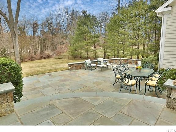 Four Bedroom, Four full and one half bath Colonial set on one private landscaped acre on quiet cul-de-sac street. Charming Mahogany wrap around front porch with French doors leading to living room. Grand rooms and great flow for entertaining both inside and out. Kitchen and family room sliding glass doors lead to flagstone patio and yard. Hardwood floors throughout, detailed moldings, soaring ceilings, sweeping staircase and beautiful sun drenched rooms are only a few of the fine characteristics that make this a special home.