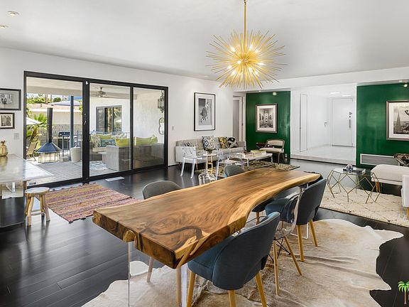 Designer re-imagined in gorgeous Deepwell Estates. Custom built four bedroom home being introduced in all it's high-designed glory. Entertaining is a must in the spacious formal living and dining room with a sunken bar that has major bling. The striking new black bamboo floors create a base to anchor this transformation of flow and style. Five remodeled baths and re-configured restful master retreat prove to be timeless updates. The terraced back yard provides elevated southwest canyon views overlooking the sparkling pebbletek pool and spa. Remodeled to Palm Springs perfection and now ready to show.