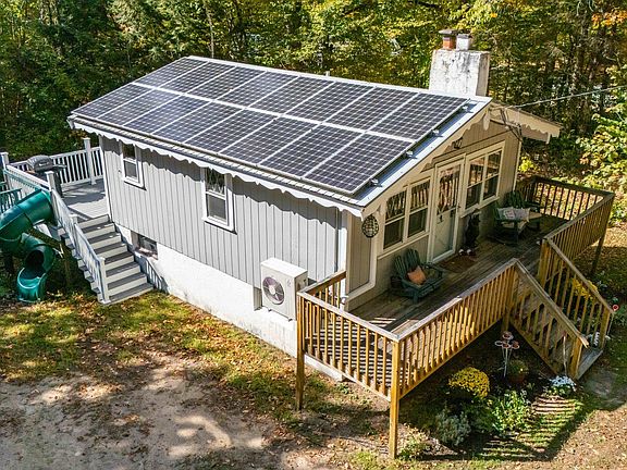 Welcome to 6 Park Road in Bartlett — a move-in-ready getaway that combines comfort, efficiency, and a great location just minutes from downtown North Conway. This 2-bedroom home (plus a den) sits on a private half-acre lot surrounded by trees, with a great outdoor setup that includes a firepit hangout area and a large storage shed. Inside, the 2021 kitchen renovation shines with modern finishes, a heated counter, and open flow to the living area where the fireplace keeps things warm in winter. The home also features 1.5 bathrooms, a mini-split A/C for summer comfort, and a wall-hung boiler/hot water combo installed in 2021 for year-round efficiency. Owned solar panels on the roof offset much of the electric cost — so you can put that money towards lift tickets. Step outside to the composite back deck — the perfect spot for morning coffee or evening relaxation — and enjoy the peace and quiet of Bartlett. Located less than 10 minutes from North Conway Village and nearby ski mountains like Cranmore, Attitash, Wildcat and all the restaurants, trails, and rivers the Valley offers. With no rental restrictions in Bartlett, you have the flexibility to use it as a full-time home, vacation escape, or income-producing property. Thoughtfully updated, energy-efficient, and in a perfect location — 6 Park Road is ready for you to enjoy.