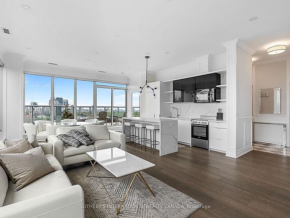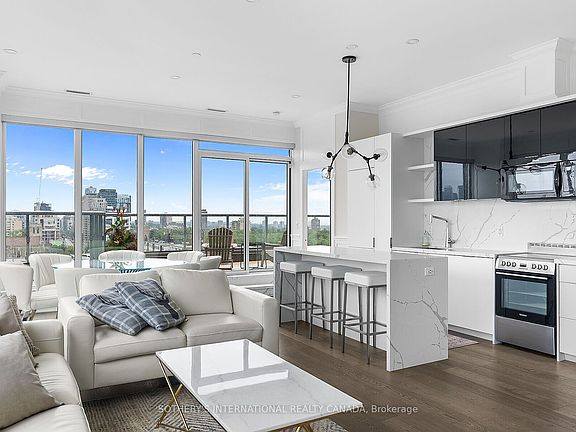 Truly one of the best terraces in Forest Hill. Welcome to the penthouse at 6 Parkwood Ave overlooking some of the most high end real estate in Toronto. This 2 bed 2 bath corner unit is flooded with natural light with 10ft ceilings and floor to ceiling windows. 1400 square feet of interior living space creates perfect flow due to the open concept living, dining, kitchen and split bedroom layout. Multiple walkouts bring you out to a jaw dropping 1400 terrace with multiple living/dining spaces, bbq, views of the CN tower and mansions of Forest Hill.Protected open views over the treetop makes for unparalelled privacy. The primary bedroom has a modern 5 pc ensuite and oversized walk-in closet. No need to lift a finger after moving in because this unit comes fully furnished!