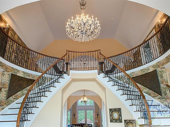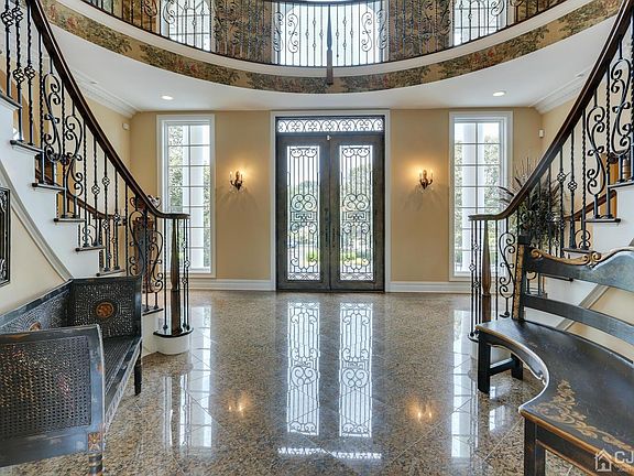 Come tour & be delighted by the artistry & craftmanship of this palatial 6 BED 7.2 Bath Estate. Greeted by 28' foyer paved in granite & adorned by a majestic dual staircase leading the way to open floor plan graced by an impressive 2 story great room open to upgraded Kitchen w/hi end applcs, large bbar w/2nd sink & gas fp. Conservatory w/vaulted ceilings, decorative moldings & wet bar. 1st flr Bed & Bath. 1st floor office w/coffered ceilings cherrywood built ins, double sided fp. Expansive Master Bedroom 2 sided gas fp, sitting room w/French doors to balcony, your private retreat. Master spa has jetted tub, steam shower/body sprays. Most bedrooms offer attached baths. 2nd flr laundry. Spacious w-o basement w/900 bottle wine cellar adds an additional 3,000 sq ft totaling over 11,000 sq ft. Gorgeous entertaining backyard. IG gunite salt water pool w/spa, 2 areas w/BBQs. Brick cabana w/full kitchen, bathroom, dressing area w/laundry & outdoor shower. Over 2 acres backing to green acres.