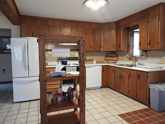 This is a unique piece of property. Has acreage, out buildings, river frontage, & privacy. There is a 23x45 2 car garage with full attic & three kennels. 20x52 - 5 bay open storage building. 13x14 wood boiler building that heats garage and could heat the house. 35x65 garage with door opener. Large entrance foyer with windows overlooking the yard. Oak cabinets in the kitchen. Open concept kitchen, living room, dining room. Family room has vaulted ceilings with stone fireplace. Laundry room on main level. Upstairs has office, craft room, & attic for storage. Built in cabinets in hallway.