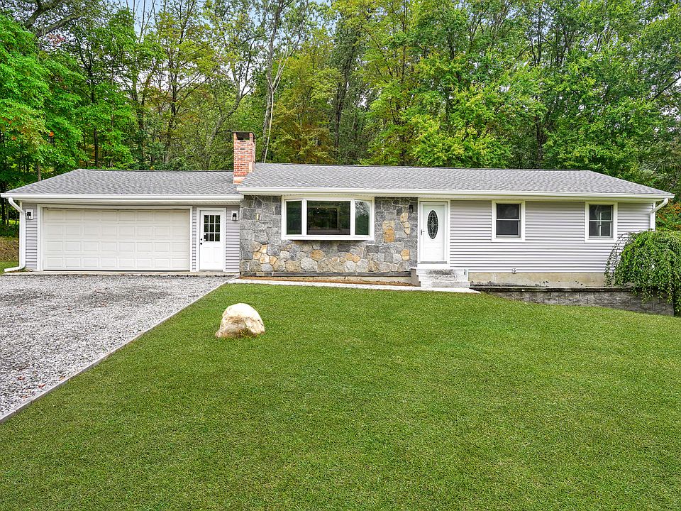 Welcome to 6 Patricia Lane; a turnkey ranch in the heart of Hawleyville. Nestled on a level and private 1.1-acre lot in a desirable walking neighborhood, this charming ranch-style home offers the perfect blend of comfort, convenience, and tranquility. With 1,196 square feet of one-level living space, this 3-bedroom, 1.5-bath residence is move-in ready and full of character. Step inside to find a sun-filled living room with a cozy wood-burning fireplace, hardwood floors throughout, and a formal dining room. The kitchen offers convenient access to the attached 2-car garage and a main-level laundry area. The lower level features a full walk-out basement, partially finished with a spacious rec room, private office, and a large unfinished storage area offering possibilities for expansion or hobby space. Enjoy peaceful mornings or summer gatherings on the expansive Trex deck overlooking the serene, tree-lined backyard. Recent updates include brand new vinyl siding and roof, along with a beautifully crafted stone walkway and front stoop that add to the home's curb appeal. This home is on a private well, septic and is heated by oil. Whether you're downsizing, just starting out, or simply looking for easy living in a quiet yet convenient location, 6 Patricia Lane is the perfect place to call home.