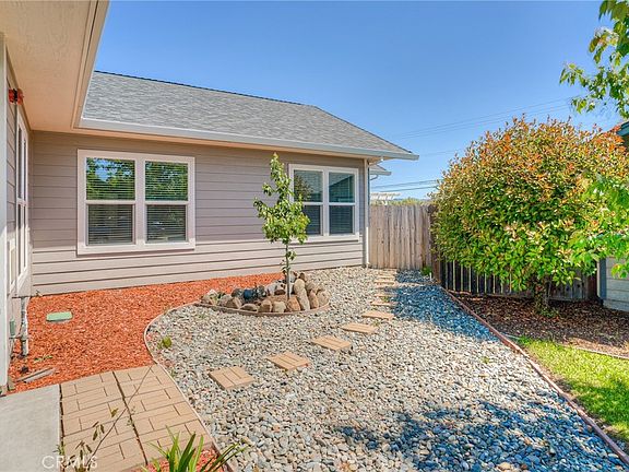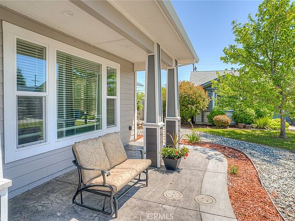 STUNNING CUSTOM 3 bd., 2 ba. HOME IN A GREAT LOCATION AND ONLY 4 YEARS OLD.....located at the end of a cul-de-sac in an established neighborhood, this wonderful home is not far from town or Lake Oroville, and has easy access to both Hwy. 70 and Hwy. 99 for the commuter. You will love the expansive, open floor plan upon entering the home through the living room. The impressive 9 ft. ceilings and large windows provide plenty of light. The kitchen has an island and breakfast bar, granite counters, stainless dishwasher, gas range and a built in microwave. There is also a built-in desk area with a granite counter. The dining area is complete with an upper and lower cabinet that can be used for storage or a bar area with a wine storage cabinet. The large laundry room off the kitchen has plenty of cabinets, a granite counter top and it's equipped with a coffee bar area and an additional pantry area. The owner has also installed plumbing for a sink. The primary bedroom is complimented by a sliding glass door leading to the back patio and the primary bath has a walk-in shower with dual showerheads, a double sink vanity and a walk-in closet. Ceiling fans have been installed in all 3 bedrooms, the living room and also above the patio. The backyard patio is an amazing 97 ft. of stamped concrete. One area is covered and is 18 ft. wide with an outside sink and cabinet. The remainder of the patio is 13 ft. wide. The owner has installed a shower in the back as well as electrical for a spa. There is also a pergola and a custom brick barbecue, fireplace, pizza oven combo. There is a shed in the backyard and citrus trees....lemon, orange, tangerine and mandarin. Looking over the back fence, you will see the east foothills and Table Mountain as well as Oroville Dam. The front area is landscaped with rock and additional stamped concrete that provides additional parking spaces. The front porch is a great place to relax and enjoy our gorgeous sunsets to the west. The home is also equipped with a AAA Smart Home Security system. Call to view this stunning home today.