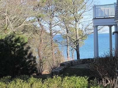 One-of-a-kind property!! Single Family Custom Home w/detached 2Car Garage w/Guest Suite with Full Bath, Finished Lower Level, Extensive Decking and Raised Brick Patio with Stone Circular Surround with Ocean Views on over 23,800 sq. ft. of land. Room for expansion. All this within steps to Deeded Ocean Beach. Close to Country Club, Marketplace and Popponesset Inn.