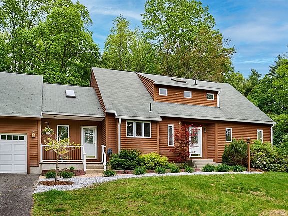 Offers due Wednesday 5/28 at 3PM. WOW! Fantastic open floor opens up the living areas in this wonderful family home! 3 bedrooms and two full baths, with an additional office loft area with skylight and a finished basement. So much room for all of your needs! The flow is spectacular, large eat in kitchen with Corian counters, breakfast peninsula and stainless appliances. Family room with pellet stove and skylights, opening to kitchen and the living room with cathedral ceiling. Multiple sliders out the back, opening to the amazing deck with gazebo, which enhances the entertaining and living area. Newer Buderus boiler, oversized garage with woodstove, fire pit and outdoor sheds a plus! Quiet neighborhood, close to trails and area bike path, just minutes to town and MA pike. Come see all this home has to offer at the open house Sat May 24th, 12-2.