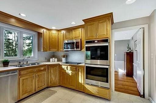 BRAND NEW STAINLESS APPLIANCES! This charming ranch style home features 4 bedrooms, 3.5 baths and has many updates! First floor master, central air, finished basement, amazing deck, patio, screened porch and attached 2 car garage. The front-to-back country kitchen has a wood burning fireplace, custom built-ins and a picture window with views. The formal dining room features over-sized windows and gleaming hardwood floors. The living room has a wood burning fireplace, custom built-ins, hardwood floors and french doors leading onto the deck. The first floor master suite boasts a newly renovated designer bath, large walk in closet and steps out to the deck. The first floor has an additional bedroom, 1 1/2 baths & laundry. The second floor has 2 bedrooms and a full bath. The LL has a large family room, office and workshop. Roof 2017, Septic 2017. Wonderful Sherborn neighborhood on Dover side of town. Farm Pond & #1 schools!!