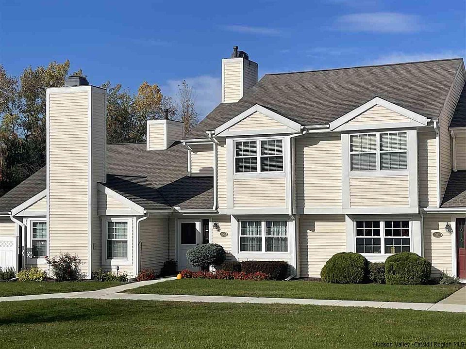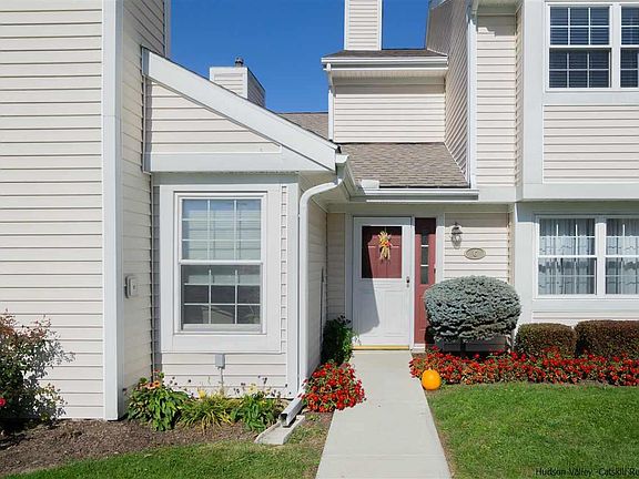 Move-in ready, easy care home in a convenient location minutes from all that Kingston, Saugerties and Woodstock offer. (also easy access to the Village of Rhinebeck and Rhinecliff AMTRAK station) Two story townhouse with bedrooms and two full baths upstairs with hardwood floors. The ground level features a dining area, living room and eat-in kitchen. This townhouse has certainly been lovingly maintained and was nicely updated about 2013 with; new HVAC, shelving in the laundry closet (on the upper level for easier use) a gas insert in the fireplace. Then, around 2020 new kitchen flooring was installed along with the new kitchen with Quartz countertops, a mantle on the fireplace, a tub fitter in the primary bedroom's ensuite bath, and more plantings in the yards. Thus, a new owner really has little to do other than to make the decor your own. The neighborhood is very tranquil and yet moments from Bread Alone, Adams Fairacre Farms, Target Lowes, Hannafords etc. HOA monthly fee currently just under $330.- covers mowing, snow removal, exterior maintenance, water and sewer, AND, this unit includes use of a storage space which other units to not all have access to in the complex.