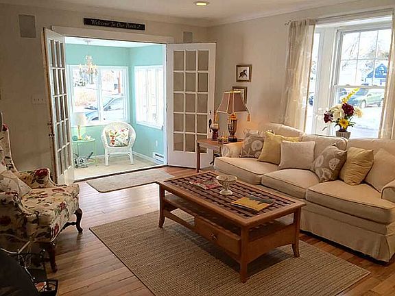 Located on a quite street this home has been RENOVATED and includes a stone fireplace, sunroom, DECK and a sunny kitchen that opens into the dining and living rooms. Updated bathrm separates the freshly painted bedrms. Comes FURNISHED or UNFURNISHED.