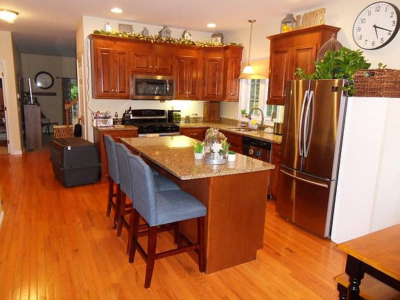 Very spacious 4 bedroom Townhouse with a much sought after first floor bedroom! Situated at the end of a cul-de-sac this unit features a cabinet filled kitchen with center island, granite counter tops, hardwood flooring and a dining area. The living room is sunken with wall to wall siding and sliders leading out to the compost deck. There is also a full bath on the first floor as well as a good sized bedroom. The second floor features two good size bedrooms with large closets, a laundry room, and full bath. The Master Bedroom is huge with double doors, a large walk-in closet, and a full bath with double sinks and tile flooring. There is also plenty of room