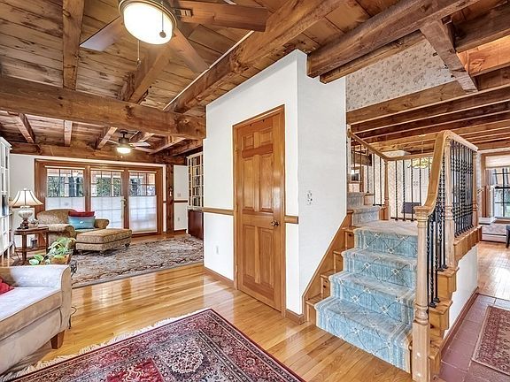 • Features: Ceiling Fan(s), Beamed Ceilings, Closet/Cabinets - Custom Built, Flooring - Hardwood, French Doors, Open Floorplan