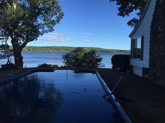 WATERFRONT 4 bedroom home on 558 acre fully recreational North Pond (aka Quaboag Pond). This home sits on a triple lot with the most gorgeous views. There is a heated inground salt water pool on the side measuring 16x32x9 fully fenced in, HUGE deck strategically placed at the end of the lot overlooking the lake. This home was built in 1930's with gleaming hardwood floors throughout most rooms and captivating millwork details yet totally updated. Large eat in kitchen with stainless appliances, oversized island and granite countertops. Formal dining room with built-in shelving. Living room is massive with hardwood floors, arched doorways, wood fireplace, Harmon pellet stove and wall of windows overlooking the water letting in lots of natural lighting. Home has all new replacement windows. There is also a finished room in the basement not included in the square footage. Generac generator included. 1 car garage