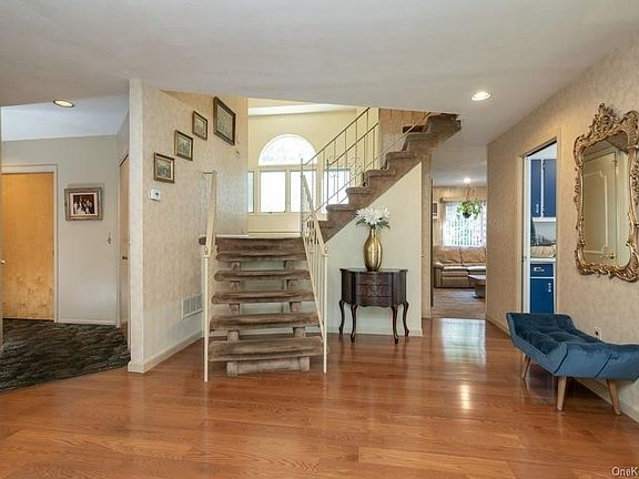 Large expanded 7 bedroom, 4 bath splanch with close to 4000 square feet of living space and a unique layout. The upper level has 6 bedrooms and 3 full baths with a balcony area overlooking the living room. The living room with cathedral ceiling is on its own separate level with a view of the level backyard. Eat in kitchen with a large storage pantry, dining room, family room, lavatory, laundry, office, library, bathroom and additional bedroom are all on the first floor. There's a playroom conveniently located just a 1/2 flight down from the kitchen. This home boasts lots of built-ins, lots of storage, and generous closet space in all rooms with existing wood floors in the living room, dining room, hallways, and most bedrooms. With almost 3/4 of an acre and a large patio for your outdoor enjoyment there's an abundance of room to entertain family and friends, both inside and out. You'll love the convenient location near major highways, shopping, schools, and houses of worship.