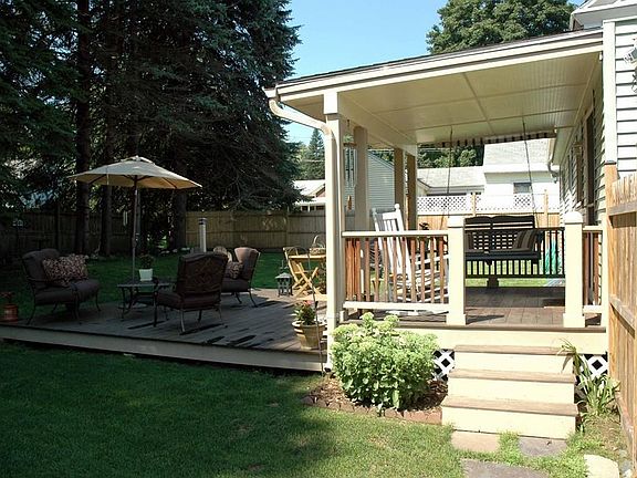 Must See, tastefully decorated Cape priced to sell and ready for you! Captivating, private backyard paradise designed with space for relaxation and entertaining. Ipe porch with swing, deck with pergola, fenced yard and large storage shed. Economical gas heat with 3 zones. Dry partially finished basement perfect for office, den or exercise room plus a workshop. Beautiful updated kitchen with quality, stylish appliances including gas range/convection oven, refrigerator and dishwasher. Convenient kitchen pantry. Pleasant, recently redecorated living room with custom wood blinds. Hardwood floors , replacement windows, vinyl siding, newer driveway and newer roof (with 40 year shingles). Conveniently located and one mile from the brand new Greenfield High School. Wow!