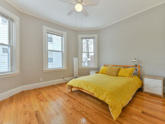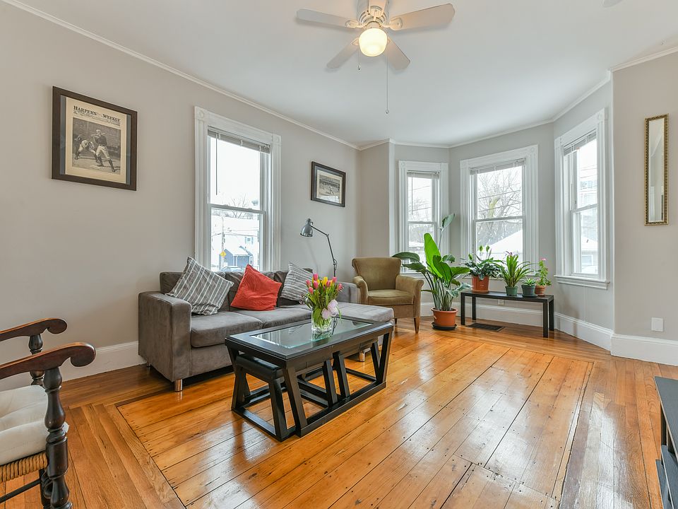 Contemporary finishes and classic charm abound in this spacious home. First-floor unit with two large bedrooms, one bath, bonus room, eat-in kitchen and living room with amazing natural light. The kitchen features clean lines, a generous eat-in area and plenty of cabinets. In-unit laundry is located right off the kitchen. Updated tile bathroom features tub/shower combo & newer pedestal sink. Your very own private deck is located right off the kitchen and overlooks a large shared yard. Front-facing bonus room makes a great office, lounging area or baby's room. Other features include wood floors throughout most of the home, high ceilings, deeded parking and a large basement storage area. Close to Roslindale Village, Forest Hills station and multiple bus lines. This unit is the only one in the building with parking! Located on a dead-end street. Great condo association, 100% owner-occupied. Welcome Home!