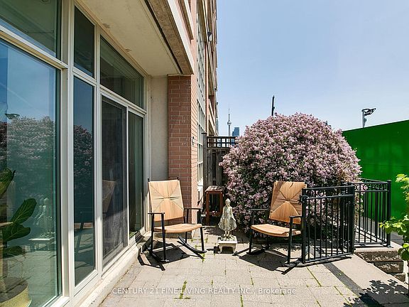 Spacious two bedroom plus den, two-bathroom on 2 storeys features 18ft ceilings & four exceptional outdoor spaces!: Enjoy the privacy of townhouse living while indulging in the convenience of premium condominium amenities. This spacious two bedroom plus den, two-bathroom home features 18ft ceilings and spans two levels and features four exceptional outdoor spaces (400 sqft) offering ample opportunities for relaxation and entertainment. Experience the perfect blend of urban sophistication and modern comfort in this stunning southwest rare corner (END UNIT) townhouse, nestled in Toronto's vibrant Liberty Village. Boasting impressive 18-foot floor-to-ceiling windows, this residence is bathed in natural light, highlighting its pristine condition and elegant design. A private office off the primary bedroom provides an ideal work-from-home setting, ensuring productivity and comfort. Thoughtfully renovated kitchen and flooring, designed storage spaces, including custom-built cabinetry in every closet, maximize space and functionality. The gourmet kitchen is equipped with premium appliances and granite counters bringing a true culinary experience to your home. Additional conveniences include 1 owned dedicated parking and a private storage locker. With lush green space right outside your front door, this residence offers a rare combination of tranquility and urban luxury in one of Toronto's most desirable neighborhoods. Liberty Village is getting several new transit options as part of the SmartTrack and Ontario Line projects, including the new King-Liberty GO Station and Exhibition Station improvements!!!