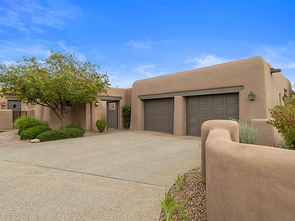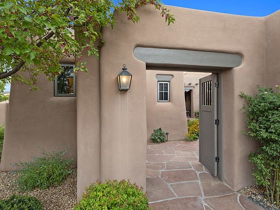 Rustic wooden gates welcome you to the lushly-landscaped entry courtyard of this elegant 2 Bedroom / 2 ½ Bath Club Casita home next to the Clubhouse in gated Las Campanas. Gorgeous views of the Sangre de Cristo mountains from the living room & back portal. Short walk to the Las Campanas Clubhouse -- Easy access for golf, dining or working out at the nearby Spa & Tennis Center. The design & location make it perfect for a "Lock & Leave" lifestyle. Kitchen updated w/ Stainless appliances & Granite countertops. Master bedroom suite w/ kiva fireplace, French doors to the back portal, twin vanities, jetted soaking tub & walk-in shower. Back portal w/ an outdoor fireplace & Sangre mountain view is perfect for socializing or hosting meals for friends. Four Fireplaces, hand-troweled plaster walls, coved ceilings w/ vigas & flagstone living area floors complete the authentic Santa Fe feel. This home has it all -- Walking distance to the Las Campanas Clubhouse, Sangre de Cristo views plus "Lock & Leave" convenience.