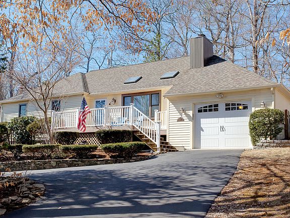 This bright cheery updated 3 bedroom 2 bath ranch is gracefully perched on a hill on a quiet dead end street of Mashpee Shores. The home boasts an open floor plan w/ cathedral ceilings, fireplace living room with wood floors, updated kitchen w/ granite counters SS appliances, a private master suite. The yard has been professionally landscaped with lots of privacy, a large deck, an 8 x 8 hot tub which awaits you on your back patio and a beautiful sunny front porch that overlooks conservation land. A newer roof and vinyl siding,1 car garage and a short stroll to the private association beach on Mashpee/Wakeby Pond finishes this beautiful move in ready home. All info. whether in print or verbally stated should be verified by a Buyers and their representatives.