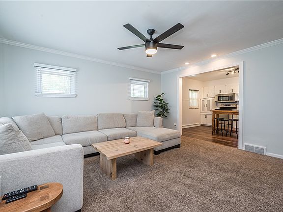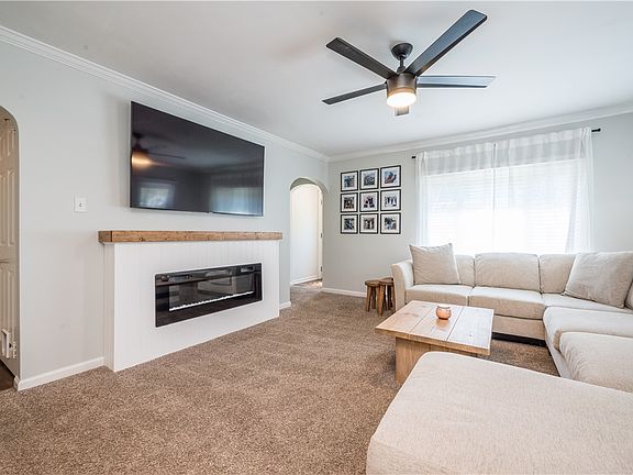 Step into magazine-worthy living at this stunning Cape Cod, where timeless neutral decor perfectly blends with natural accents and captivating design elements. Featuring 4 bedrooms and 2 full baths, spacious living awaits. Main level offers two bedrooms, including fabulous primary bedroom, and an updated full bath featuring sleek new vanity and subway tile surround. Enjoy relaxing at the end of a long day in the large living room where a built-in fireplace and custom mantel creates a truly peaceful oasis. Large eat-in kitchen impresses with shaker cabinets and stainless steel appliances. Upper level features two additional bedrooms. Finished lower-level game room, with gorgeous full bath just steps away, is ideal for entertaining. Add a pullout couch and it becomes the perfect spot for overnight guests. Spend warmer months on the beautiful covered porch or enjoying the private yard. Bonus shed for landscaping storage. This beautiful home is truly ready for you!