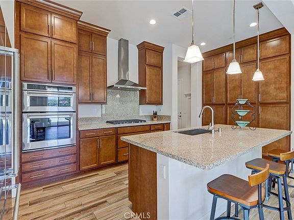 Enjoy this wonderfully upgraded end of cul-de-sac home with bodacious backyard like no other, the open concept of this 55+ Chateau model has cathedral ceilings, walls of glass and double sliding glass doors that lead to covered patios where remote controlled awnings spread even more coverage increasing your visual & usable experience, this Richard Cohen award winning backyard comes complete with a built-in kitchen, BBQ, wine fridge, sink and extra drawers for outdoor storage, there is plenty of seating area for gatherings around a fire pit, and a water feature viewed from the dinning area inside the house, granite counter tops, KitchenAid stainless appliances and dark maple ceiling height cabinets adorn the kitchen, ceramic wood like tile is throughout this spacious 2 bedroom, 2.5 bathroom plus den floor plan, plantation shutters, recessed lighting and 4 ceiling fans add to the many upgrades, the primary bedroom has a walk-in shower and oversized closet, the secondary bedroom has a shower-tub configuration and barn door for added privacy. This homes location allows you walking distance to the infamous Hilltop Club for exercise and events, other RMV amenities include saltwater pools, fitness centers, hiking trails, neighborhood farms, sports parks, pickleball and more.