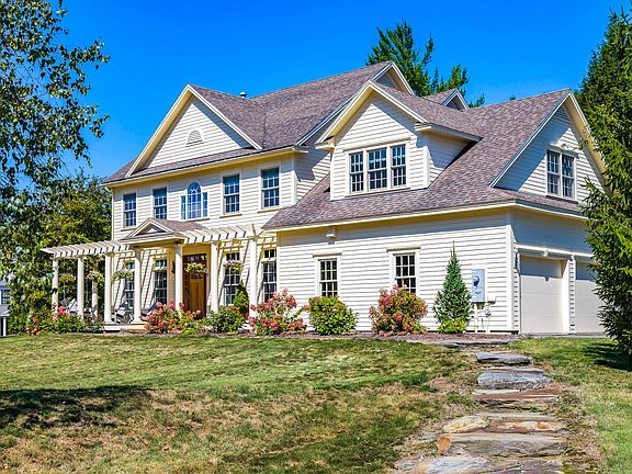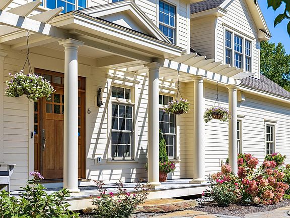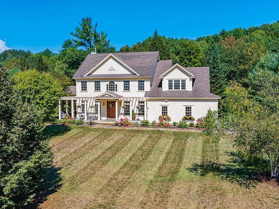 In an enclave of fine homes off Hanover’s popular River Road, 6 Purling Brooks stands out for location, design, a pair of primary bedroom suites, and recent kitchen and bath upgrades. With one of the largest and most private backyards in the development, the property presents both stylish and functional indoor and outdoor living spaces. Starting with an open concept with cathedral ceilings, maple floors, and a gas fireplace, the chef’s kitchen, upgraded by the current owners, presents everything one might need. In the warmer months, the 1300 sq. ft Brazilian Teak deck ties the entire back of the home together from the primary bedroom and outdoor shower to the screened porch. Outdoor cooking and dining areas, including a cedar bar topped with granite counters, are framed under a lighted pergola. A formal dining room and office flank the main entry foyer and the first-floor primary bedroom suite offers two walk-in closets, and an-suite bath with a jetted tub and a shower. First-floor laundry and mudroom entry to the attached two-car garage complete the ground level. The second floor offers two more bedrooms sharing rich Koa wood flooring as well as a second-floor primary bedroom suite with expansive built-ins and a stylish and modern en-suite bathroom renovation. A 10-minute drive north of downtown Hanover, the property abuts the 38-acre lower Slade Brook conservation area, the Waterfall Trail, and is near River Rd.