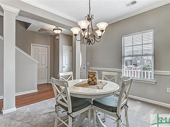 Featuring fresh paint and new flooring throughout, 6 Quartz Way is MOVE IN READY! This beautiful 3 bed 2.5 bath home boasts a large formal dining room and open concept living area where the spacious family room meets a fully equipped kitchen including a breakfast bar and generous pantry. The main level master retreat offers a walk-in closet and private, en-suite bath with double vanity, garden tub, and separate shower. 2 additional bedrooms share a full bath upstairs. Enjoy peaceful lagoon views as well as access to Stonelake's Community Pool. Conveniently located near restaurants, shopping, and HAAF. Just minutes from downtown Savannah! A must see!
