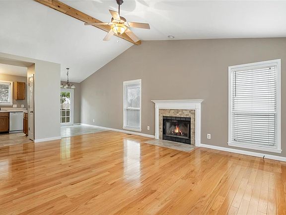 Beautifully updated ranch in St. Peters! The open floor plan gives you plenty of flexible space to make your own. Travel on gleaming hardwood floors into the Great Room with a sky-high vaulted ceiling, cozy wood burning fireplace, and an abundance of windows that floods the space with natural light. The fully functioning Kitchen opens up to the Dining Room with atrium doors that lead out to the fenced in backyard. Down the hall, you'll find the newly carpeted bedrooms - a Master Suite and two additional bedrooms - plus a second full bath. The spacious Basement has a finished family/rec room with plush carpet and tons of space to entertain. Plus an oversized laundry/storage room. This wonderful ranch is complete with a new roof, attached 2-car garage, and located in Fort Zumwalt South School District.