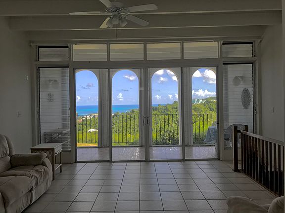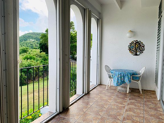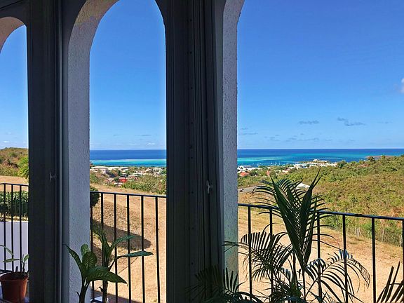 UNOBSTRUCTED VIEWS! This 2 BR/2.5-bath condo in Questa Verde offers gorgeous views of the sea and Christiansted harbor, a consistent breeze and a spacious floor plan. The kitchen was recently upgraded with new cabinets and lovely granite counter tops. This condo has beautiful natural light streaming through as well as beautiful night lights from Christiansted and the harbor that can be enjoyed from the upper and lower outdoor living space. The master suite opens to a private veranda and a grassy, manicured lawn (easy for taking your pup out!). The complex has so many extras including a generator, completed fenced with security entry gate, LARGE swimming pool, mail and trash service, an on-site manager, gorgeous grounds and YES you can even bring your fur-babies! Not to mention it is just minutes from Christiansted, Sunny Isle Shopping Center and multiple beaches! Very coveninetly located. Blank slate for your personal touch and perfect for your living needs, minus a washer/dryer.