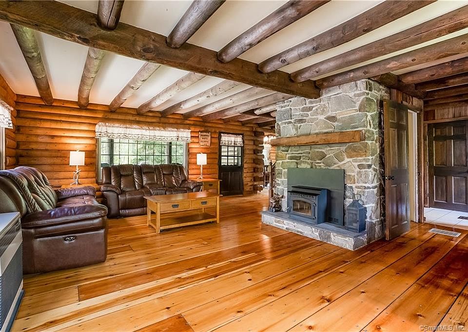 Beautiful log home on country road. Lovingly maintained by owners. First floor laundry and pantry. Heat with newer wood furnace in basement, kerosene or pellet stove in living room, or electric baseboard. First and second level floors refinished. 2 car detached garage with loft. Conservation land across the road, miles of riding trails, stables nearby. Country living at its best. Close to shopping: Big Y/Pharmacy new in town, Stop & Shop in East Hampton. Enjoy Lake Terramugus all year round - fishing, canoeing, swimming, children's play ground, tennis courts, baseball fields, soccer fields. Washer new in 2017, dryer new in 2016. Generator hookup. Thermal windows installed throughout approximately 2014.