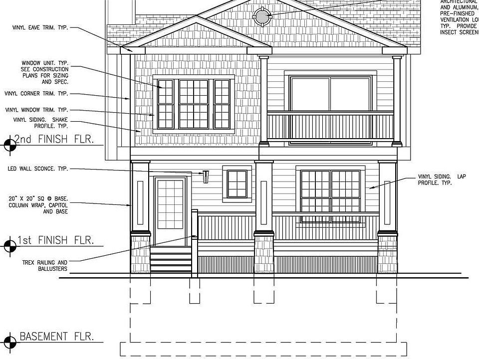 Coming soon, extraordinary custom built home 5 homes from the Bay and sunsets. Over 4000 square feet including a full-size basement, and decks in this upside-down layout home designed to capture optimal views. The first floor features a full-length front porch, entry foyer, mini en suite, 2 additional guest bedrooms with a full hall bath, large rear family room, laundry room, powder room, and covered rear porch. The second floor, with vaulted ceilings in the great room (living room, dining, and kitchen) lined with windows to enjoy the sunset sky that will bring years of enjoyment for relaxation and entertainment. There is a very generous rear master suite with double sinks and a private deck. On the 2nd floor there is a 5th bedroom (that could be utilized as an office or den) and a 4th full bathroom. Features: Wood floors in common areas, custom millwork package including 6 inch trim, Superior wall precast 9" basement, 2 zone heating, and air, composite decking, Certainteed siding, designer kitchen, upgraded appliance package, and granite counters. 2021 delivery. Pool and Elevator and detached garage