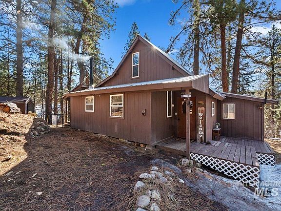 Nestled in Boise County, cabin on two parcels is over 2 acres, has two creeks running through it during spring and is perfect for a mountain getaway or year round living off Grimes & Clear Creek area. This private and serene setting has year round road access and is heavily timbered with NO HOA or CCR's!! Cabin has a bedroom, a brand new bathroom and a loft ready for guests! The kitchen is fully equipped with everything you need such as a refrigerator, stove, microwave, and washer and dryer. Additional features are a sunroom, wrap around porch/deck, tons of storage, firepit, horseshoe pit with 4 horseshoes, shed, swing and trails throughout the property. Property has its own well, septic, sprinkler system, frost free hydrant, buffalo grass and plumbing is new with updated electrical in kitchen. Both parcels must be sold together as the front parcel is the driveway access to the cabin. Minutes to trails, campgrounds, creeks and Clear Creek Lodge.