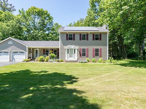 Welcome home to this wonderful Colonial in a highly desirable Essex neighborhood! This spacious home offers a wonderful floor plan featuring an open concept eat-in kitchen overlooking the family room, perfect for entertaining. You will love the Corian counter tops, center island, and pantry. Off of the kitchen is an inviting sunroom/great room that is sure to be a favorite spot with its vaulted ceiling, wood burning fireplace, hardwood floors, deck access, and tons of natural light! The dining room ajoins the kitchen and living room, making for a wonderful flow throughout the main level. The second floor offers a large master bedroom with en-suite bath and two additional bedrooms that share a full bathroom. The basement is nicely finished with new carpeting and plenty of space for whatever you may desire. There is also great storage with organized shelving! The attached 2-car garage features basement access. Outside you will enjoy a beautifully landscaped .49 acre lot, with level backyard, perfect for outdoor enjoyment! Other great features include a functional mudroom, new carpet throughout the second floor, basement, and living room, storage shed, and a 30-year architectural shingle roof installed in 2012. You will enjoy monthly expense savings with the fully operational and monitored solar energy system, along with the conveniences of natural gas. Desirable Essex location close to schools, shopping, restaurants, and I-89. This home is a must see!