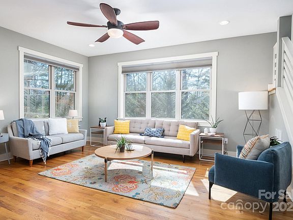 Gorgeous 2016 JAG-built Energy Star and GreenBuilt NC home in East Asheville’s popular Haw Creek neighborhood. Downtown Asheville, the WNC Nature Center, hiking trails along the Blue Ridge Parkway, and numerous groceries and shopping are all within 10 minutes or less. Home sits on a quiet street with a level, 0.23-acre lot and a fully fenced backyard for play and pets. Fantastic wraparound screened-in porch awaits your relaxing mornings or dinner parties with friends. This three-bedroom home lives much larger than its square footage, offering a modern open floor plan, an extra living room or office, a private primary suite on the main level, and a custom storage shed for all of your outdoor gear. Beautiful hardwood floors throughout the living and sleeping spaces, along with helpful built-ins and window treatments — completely move-in ready! AC Reynolds school district. See brochure and floor plan for more information. HIGHEST AND BEST OFFERS BY SUNDAY, FEB 25 AT 5PM.