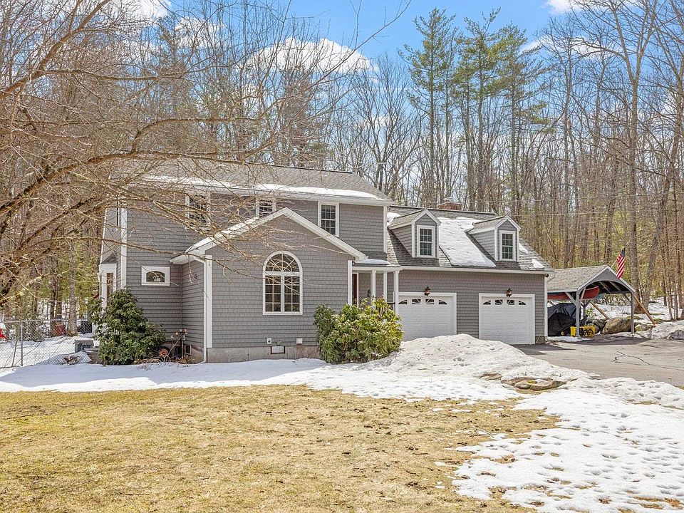 This well maintained home offers 3 bedrooms, 2 bathrooms, approximately 2,500 sq/ft of living space, an attached two car garage & carport. The home is situated on a private 2.01 acre lot, with mature landscaping, expansive deck, and large shed with screenhouse! Spacious kitchen with vaulted ceilings, beautiful wooden beams, stainless appliances, and ample cabinet/countertop space. The elegant dining room boasts wood wainscoting panels, dentil crown molding, and a large bay window with stained glass. Intimate living room with hardwood floors, exposed beams, pine ceiling, and wood stove hookup is a perfect spot to enjoy your favorite movie! The den (currently used as a second dining room) has plenty of natural light, exposed beams, pine ceiling, hardwood floors and direct access to the back deck. The first of three bedrooms, and a three quarter bathroom completes the first level. Retreat to the spacious primary bedroom with vaulted ceilings, two walk-in closets, a wood burning fireplace, and private balcony overlooking the tranquil forest. Third bedroom, home office, and an updated full bathroom completes the second level. Partially finished lower level has a large laundry room, family room, and plenty of storage. Many recent updates including siding, chimneys, roof, second floor windows, skylights, and flooring. Close to Palmer-Bartell Forest, Potanipo Pond, shops, restaurants, and much more! Delayed showings, showings to commence at Open House 04/02/2023, 10:30-1:30.