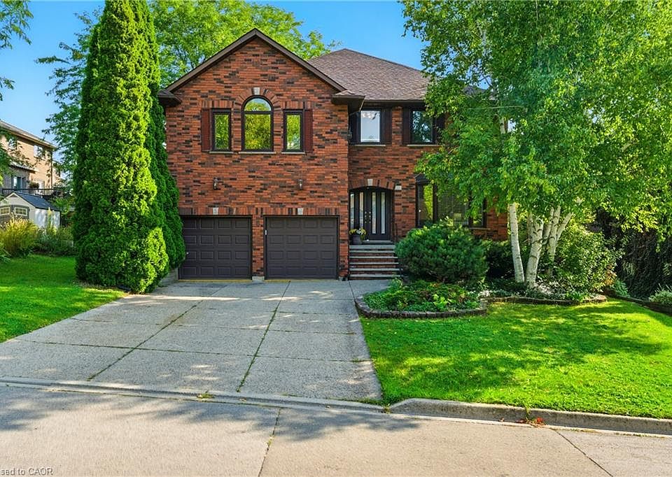 Custom-Built 5 Bedroom Home in Prestigious Coote’s Paradise! Welcome to this stunning all-brick 3,588sqft home, situated in one of Dundas’s most desirable neighborhoods. Impeccably cared for by the original owners for 35 years, this home combines timeless quality, thoughtful design & unique features. The bright and spacious main level boasts large principal rooms, including a living rm, dining rm, family rm w/ gas fireplace, office, kitchen w/ breakfast nook, main-level laundry & 2pc bath. Gleaming hardwood floors & ceramic tile flow throughout. Solid oak staircase leads to the second level, highlighted by an oversized primary suite w/ 6pc ensuite, walk-in closet & walk-out balcony. Three additional spacious bdrms, 4pc bath & versatile oversized room w/ its own 3pc ensuite, fireplace, hardwood floors & wet bar provide endless options – perfect as 5th bdrm, games rm, entertainment lounge, in-law suite, or nanny’s quarters. Partially finished basement w/ rough-in bath offers a blank canvas for your personal needs. Set on generous 62 x 105 lot, the private backyard features 19 x 21 deck, mature trees & sprinkler system. The double-wide aggregate drive & double garage add curb appeal & convenience. Updates over the years include roof, furnace, AC, windows, electrical & more. Unbeatable location w/ nearby trails to Webster & Tews Falls, Dundas Valley Conservation Park, minutes to quaint Dundas shops, restaurants, schools & McMaster University. A truly one-of-a-kind home!