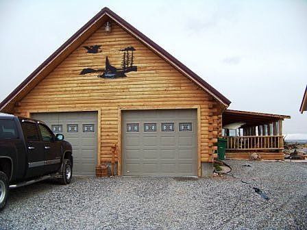 Amazing log home (6" D logs) with master bedroom suite with tiled shower, jetted tub, walk in closet complete with cabinets, shoe shelf, hat racks, multiple clothing racks. This closet is a must see! Master retreat also offers its own living area. Vaulted ceilings greet you as you enter the home with open kitchen and dining room. The main level has two bedrooms and another bathroom, laundry and access to the covered patio with winter windows and summer screens. Home has two room air conditioner units.