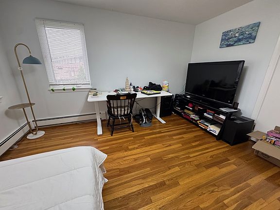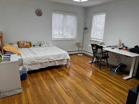 #3-Grey-Bedroom (about ~14'x13')-This room is part of the upper level of a single family residence cross the Beacon Street from Boston College Stadium. The upper level has 4 bedrooms and 2 bath. The upper level has central AC and Cooling. Kitchen and sunroom have additional 2 mini splits that provide heating and cooling. This unit has 2 screened windows (west/north west facing windows that bring in the light. mini blinds are included. Hardwood floor makes cleaning easy. This room shares a newly renovated full bath down the hall, 2 separate storage closets. This unit also shares an eat in kitchen with sky light, a dining room that sits 8+ people and a living room. Sitting on a modern glass TV stand is the 55" TV with smart TV functionalities provided by Amazon Fire Stick. Kitchen, Dining and Living room have many recess lights that provide ample lighting. Sitting in the back is a sunroom with in unit washer/dryer and year around heating and cooling. This unit has a lot of common space for you to study, work, eat, relax and socialize with friends. Parking spots are also available for rent separately. No Broker Fee. 12