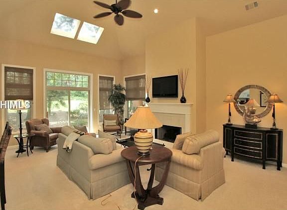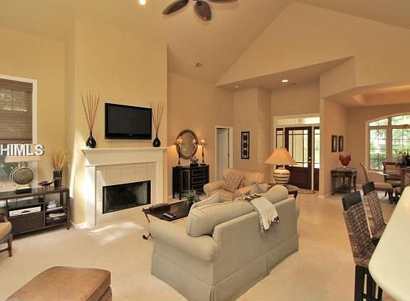 Newer style charmer with high smooth ceilings, open floorplan, open eat in kitchen and golf view of 8th tee. 3 spacious bedrooms each with their own bath, plus another room off of kitchen which is a perfect den/TV room. There is also another room off of laundry room which could be used for extra storage or as an office. Beautifully decorated and furnishings negotiable. Great location, close to Clubhouse and entrance! Newly renovated Clubhouse coming soon! Don't miss this one!! (909113)