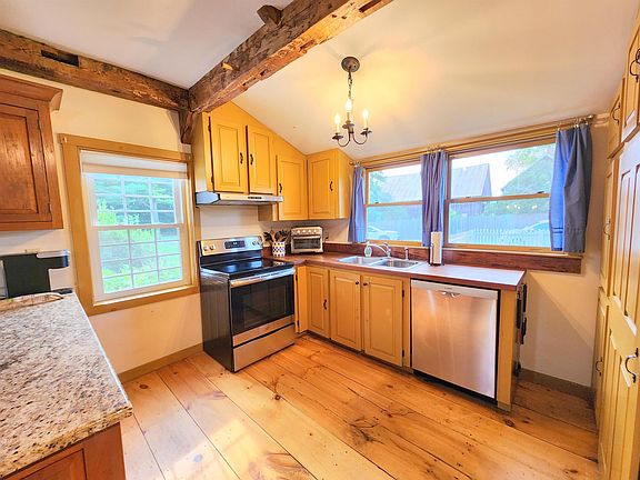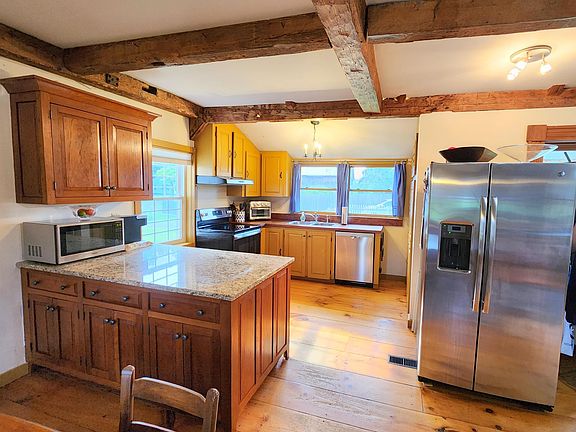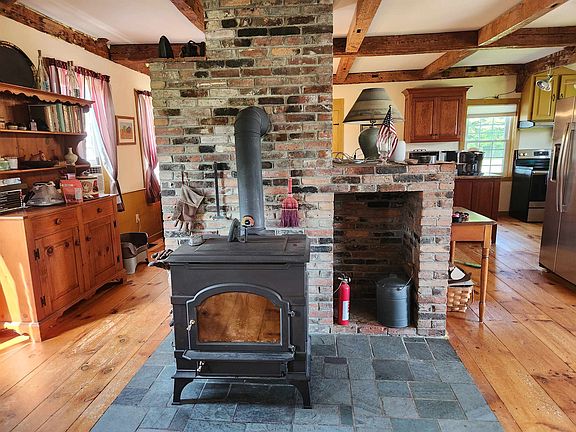 Great Location! Circa 1800 Cape home with addition on 1 +/- acre of level open land. Abuts conserved land. Distant views of the hills & fields. Deck and fire pit. Country charm with exposed beams, wide pine floors, natural light, 4 bedrooms, 2 baths, office with built-in's, family room, woodstove in living room, beehive oven on the kitchen side. Updates included standing seam roof, kitchen, large shower in bathroom with primary bedroom on the first level. Easy commute to DHMC & the Upper Valley amenities- restaurants, grocery store, banks, golf course, lumber supply, drug store and much more. Don't miss this opportunity!