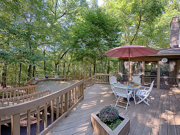 Your own private haven communing with nature, this updated, classic home is divinely secluded, yet close to lakes, hiking trails and shopping. Move right in and enjoy the resort lifestyle. This expanded ranch offers a traditional, easy living layout, plus exceptional space all with wooded views and privacy. Upgrades include: wide doorways creating an open flow, large windows and skylights, a new chef's kitchen with stunning custom cabinetry, new marble baths, refinished wood flooring, a multi-leveled deck and screened porch. The unique layout offers one, two or three level living. The first level provides 3 bedrooms and 2 full baths, living, dining, kitchen, family and laundry rooms plus the garage entrance, perfect for one level living. If more space is desired, there are 3 additional bedrooms and a full bath on level 2. Another bedroom suite is located in the walk-out basement as well as a spacious great room and charming fireplace. Multi-level decking is ideal for outdoor entertaining and for enjoying the peaceful nature views and chirping birds. Nestled a short stroll from Birchwood Lake with its town beach plus easy access to the Tourne Park featuring over 500 acres of hiking trails, it is also close to Denville shops. Convenient busing is provided to the town award winning schools. Enjoy strolling through the wooded streets and returning to your little oasis nestled in the woods,