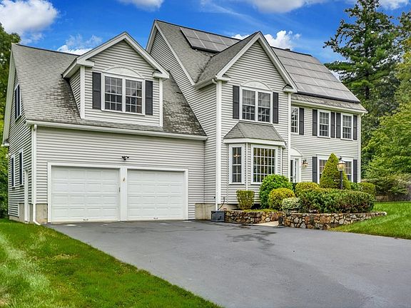 Nothing else like this on the market in Hopedale! Welcome to your new spacious home on almost a full acre of land on a secluded tree-lined lot. With four bedrooms - including a large oversized bedroom over the garage - three and a half baths, a fully finished walkout basement, you'll have plenty of space for everyone. The open layout is perfect for entertaining, with the kitchen with granite / stainless appliances replaced in 2016, and a breakfast bar opening up to living and dining rooms. The finished basement has a full bath, a bedroom, and room for a media or entertainment space, and a separate living room. Solar panels installed in 2022 keep the electric bills down. Soak up the remaining summer sun on the back deck, play in the above ground 27-foot pool, and roast marshmallows at the fire pit at night. This is an excellent place to work from home, and you can also get to 495 in minutes if you need to head into the office.