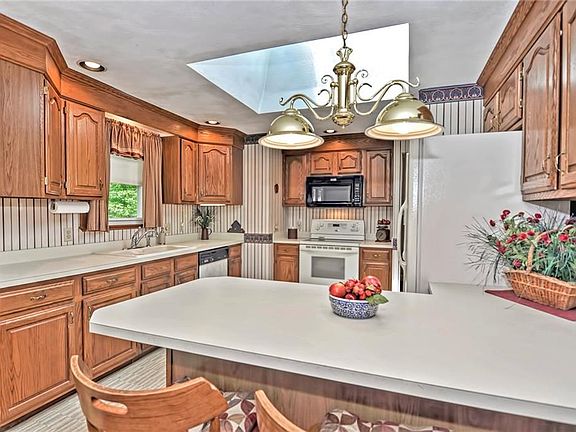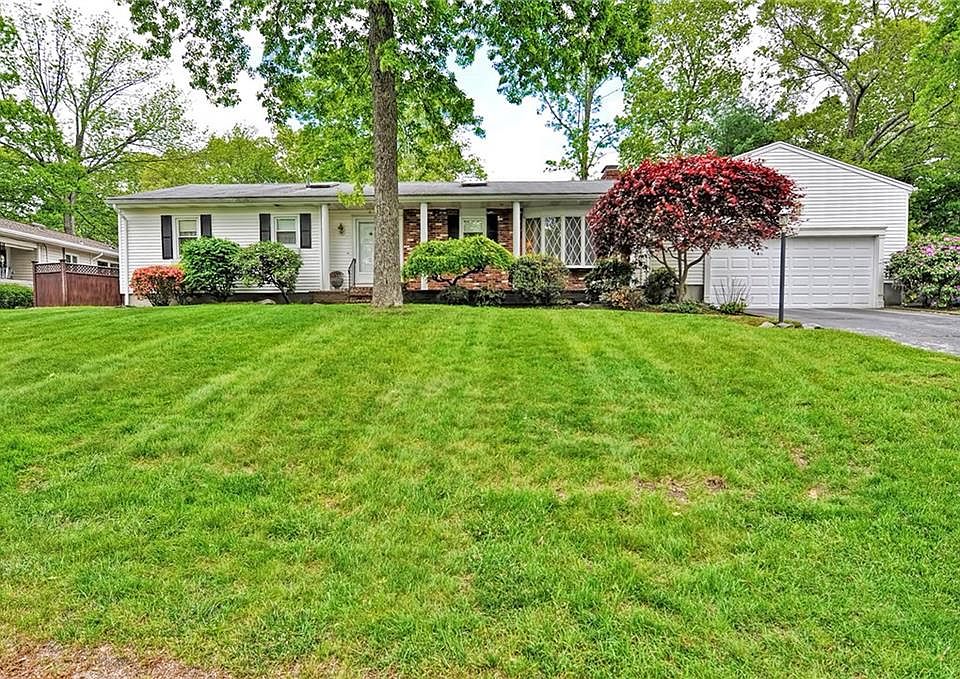 This home is ideal if you love to entertain. Well built sprawling ranch with a great floor plan. Kitchen with skylight and recessed lights opens to a dining area. Impressive living room with a gas fireplace and sliding doors leads you to a beautiful private sun room overlooking the backyard. Master bedroom with full bath, hardwood floors, and two additional bedrooms. Lower level offers a finished family room with a fireplace, workshop and plenty of space for storage. Updated windows, central air, built-ins, two car garage, and town sewer. With some TLC this home can be magnificent. Located in a beautiful neighborhood and convenient to major highways, restaurants, and stores