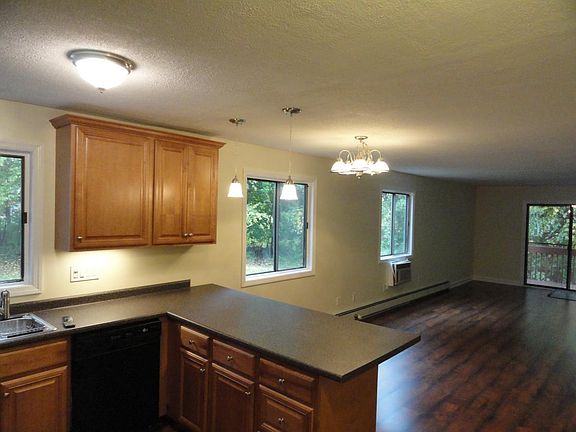 Rent INCLUDES all HEAT and HOT WATER (huge savings for Tenant with this unit). Bright, beautifully updated and freshly painted 5 room, 2 bathroom, 2 bedroom corner unit condo. This private 1st floor unit is located in a small complex surrounded by woods. It has a wide open (large) floor plan: (39 ft x 16 ft kitchen/living room/dining room - 1100 square feet of living space) with all new windows, doors and slider out to the deck and backyard. Lots of storage and closet space, W/D hookup in unit, plus W/D's are available in the next building for all residents. There is a gated private swimming pool and large open field for outdoor activities, or you can walk 5 minutes to Candlewood Lake and the town park if you prefer the beach. Danbury Town Park, Beaches, Malls, Shoprite, Whole Foods, Trader Joe's, Other Shopping, and I84 are only minutes away. Reserved parking, plus LOTS of unreserved parking for residents and guests. (I just merged the pics w/ the NEW white windows and slider, plus the warm brown front door in with the pics I already took for the ad) *HEAT and HOT WATER INCLUDED in the rent *No Pets, No Smoking, NO EXCEPTIONS