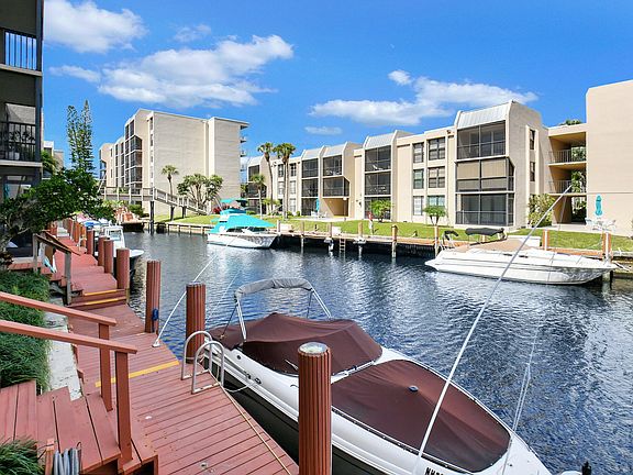 Boater's Paradise! LOWEST priced condo with a PRIVATE DOCK INCLUDED! This gated waterfront community is located in SE Boca Raton. Fabulous opportunity to purchase this lowest priced first floor condo with 27' ft dock. Keep your boat directly behind you. Only 17 minutes to Inlet. Relax on your private screened patio overlooking the canal & lagoon. Tile floors. NEW ELECTRIC PANEL. Freshly painted. Just steps to one of the five community pools. Assigned parking space close by. Gated community, 5 swimming pools, clubhouse & tennis. Just minutes to the beach, Mizner Park, Royal Palm, Trader Joe's, Starbucks and so much more. Assoc fee includes water, trash, cable & reserves. Clubhouse coming soon. SELLER PAID ASSESSMENT. Great investment property. Can rent immediately.