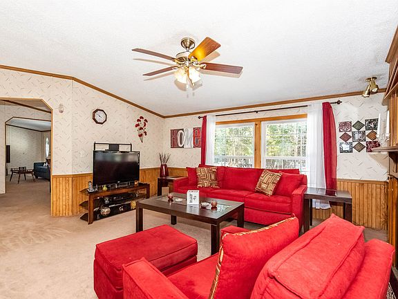 The best lot and one of the largest in the park!! Come and check out the curb appeal this home has sitting regally on the corner of Ruby Drive, with southern exposure. The large eat in kitchen with center island has tons of cabinet space and is open to the family room that includes a wood burning fireplace, built ins and large windows. Perfect for a snowy afternoon. The home also has a seperate dining area that can fit a large dining table then off of that there's even another sitting/living room. The space is endless! A primary bedroom with a large jacuzzi tub and shower, then two other bedrooms with a full bath in between. The rooms flow and the space is there for a family, for your retirement, or just starting out. Take a look and don't miss out. Call today! (pets welcome with approval)