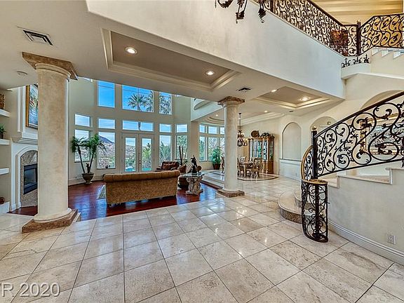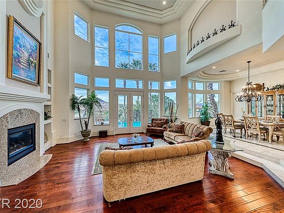 Immaculate Beauty! 2 Story custom home in the prestigious guard gated community of SouthShore with panoramic views of lake and mountains. Grand entry foyer flows into open floor plan w/marble flooring & coffered cathedral ceilings,formal living & dining room, gourmet kitchen, elevator to up & down family rooms w/wet bar, up & down master bedrooms w/balcony, sitting area and elegant en suite. Backyard is an entertainer's delight with covered patio, built in BBQ, sparkling pool, and spa. SID/LID assessment is paid in full.WOW!