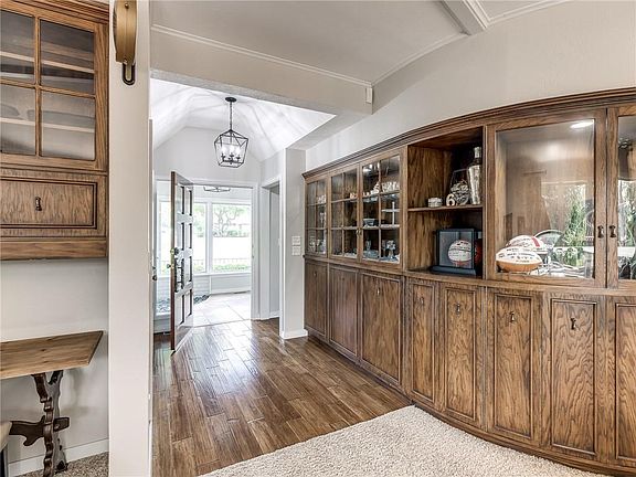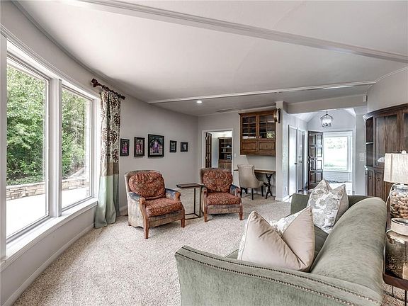 Priced below a recent appraisal, this beautiful, updated home in the coveted Rustic Hills addition is a must see. Stunning views of the nearly 1 acre lot as you enter this unique home built by the original Rustic Hills developer. Extensive custom built ins throughout and so many updates. Fully remodeled kitchen features marble countertops, center island with smooth top range, double ovens, big walk in pantry and opens to the formal dining space and living area. Huge laundry room/craft room/mud room features a sink and tons of storage and is accessible from the master bath. The updated master bathroom is very spacious and features his/hers sinks and closets. Master suite has a beautiful sitting room attached with a fireplace. The other downstairs bedroom features an en suite bathroom and a Murphy bed for flexible options! Upstairs are two generous bedrooms and another fully remodeled bathroom. The property includes another 0.52 acres behind the home (included in total acreage).
