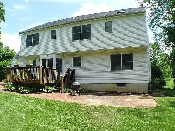 MOTIVATED SELLERS...PRESENT OFFERS on this classic 8-room, 4-bedroom & 2.5-bath colonial on 2.79 acres features a grand 2-story center-hall foyer with a large palladium window and an abundance of natural light, an eat-in-kitchen with oak cabinetry and work-computer desk, and sliders to the rear deck & private backyard with a brick patio, above ground pool and garden shed; the formal dining, living and family rooms are spacious and highlighted by a wood-burning brick surround fireplace. The 2nd floor features a master bedroom with a tray ceiling, 2 walk-in closets and a tiled master bath; along with 3 additional spacious bedrooms.