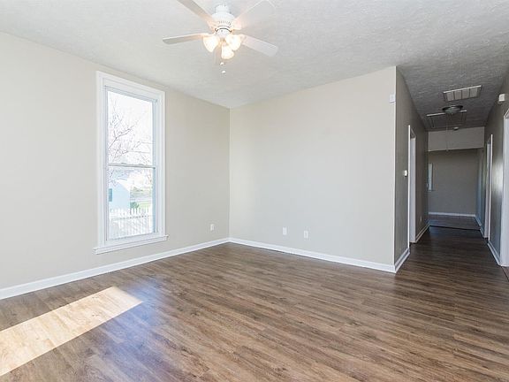 NEWLY Renovated! Move-In Ready! 1-story home with 3 Bedrooms, 1 full bath, Living Room, Dining Room, and Covered Porch. Large detached garage. Newly painted white picket fence. 10' tall ceilings. New stainless steel appliances (range, refrigerator, dishwasher, microwave). Beautiful solid oak hardwood floor in one bedroom and carpet in the other two bedrooms. Tile in kitchen, dining room, bathroom, and utility closet. New privacy fence. Natural gas furnace with electric heat pump air conditioning. New shutters. Newly painted interior. New custom-built fire pit. Located close to downtown. 1-Year Home Warranty Included! Schools should be verified by buyer.