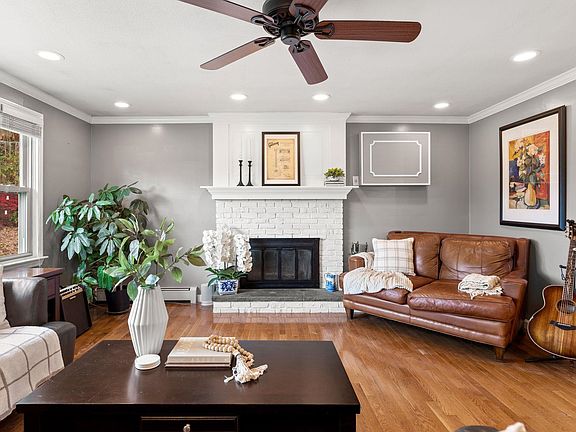 Welcome to your serene retreat! This beautifully updated 3/4-bedroom home features an inviting eat-in kitchen and a spacious family room with a cozy fireplace, perfect for gatherings. Enjoy outdoor living on the expansive Trex composite deck and patio, complete with a fire pit for those chilly evenings. The finished lower level offers versatility with a recreation/media room with a 10 speaker Atmos surround sound system built in, along with a 2nd fireplace, half bath, laundry area, and a bonus room that's ideal for a private office, exercise space or guest bedroom. With hardwood floors and numerous updates throughout, including EV charger in the garage, generator hook up and recessed lighting in the common areas, this home combines comfort and style in a tranquil setting. Plus, the included shed and attic provide extra storage. Don’t miss this opportunity to own a piece of paradise!